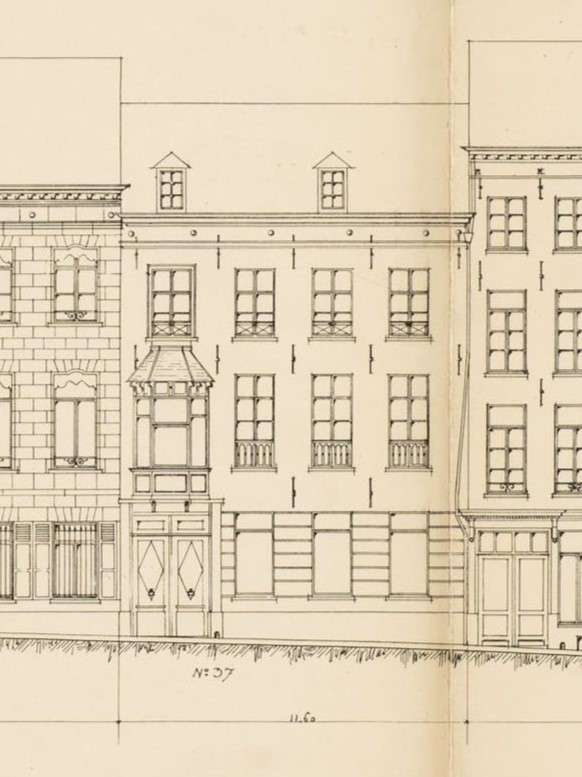 Ancien hôtel particulier, dont les parties les plus anciennes remontent au XVIe siècle, originellement conçu comme palais urbain de style Renaissance flamande, remanié aux XVIIIe et XIXe siècles dans le goût néoclassique et Empire. Le bâtiment devient une maison de commerce au début du XXe siècle, avec modifications mineures du rez-de-chaussée, avant de profondes transformations intérieures entre 1993 et 1996. Le bâtiment est partiellement classé en 2005.