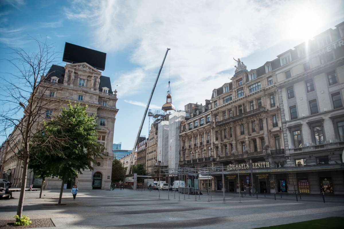 Situé en plein centre de Bruxelles, le Passage du Nord constitue l’un des ensembles les mieux conservés du dernier quart du 19è siècle. La façade avant donnant sur la Place de Brouckère, la façade arrière sur la rue Neuve 40-44, les façades intérieures – en ce compris les cariatides, la passerelle et les lampes en fonte, le pavement et la verrière – ont été classées par arrêté du Gouvernement de la Région de Bruxelles-Capitale le 8 septembre 1994. Tour à tour Musée, extension de l’Hôtel Métropole voisin, puis centre de conférence dans les années 1990, le Passage du Nord se prépare à une nouvelle vie, dans un centre urbain en plein renouveau. L’affectation en commerces du rez-de-chaussée et de l’entresol n’a pas varié depuis l’origine, encouragée par une récente restauration de qualité de l’ensemble des façades intérieures. Par contre, les étages supérieurs, privés très tôt de leurs décors d’origine et transformés à plusieurs reprises, attendent une nouvelle affectation depuis de nombreuses années. Sur base de ce projet, un contrat de bail emphytéotique entre la Société Civile du Passage du Nord, propriétaire des lieux depuis 1881, et la société COHABS a pu être signé en septembre 2020. COHABS est un groupe international de coliving basé à Bruxelles spécialisé dans la conception de logements modernes, innovants, meublés et entièrement équipés. Le programme de coliving a permis de maintenir, voire rétablir, en grande partie les volumes et structures d’origine afin d’y accueillir les espaces privatifs et communs, agrémentés d’un patio et d’un rooftop avec vue panoramique sur le centre-ville. Cette nouvelle affectation très pertinente a permis de redonner enfin vie aux étages d’un bâtiment difficile, mais à l’architecture remarquable. La restitution des deux dômes disparus a constitué le point fort de ce projet patrimonial, et rétabllissant la silhouette caractéristique du Passage du Nord visible depuis les Boulevards du Centre et la Place de Brouckère.