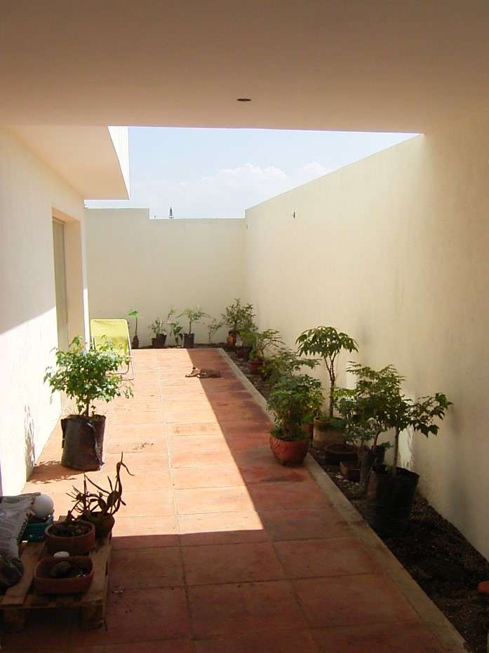 Nouvelle habitation construite dans la banlieue de Guatemala-Ciudad. Le plan s’organise autour du vide du séjour sur deux niveaux, ouvert sur le jardin intérieur par une grande baie vitrée. L’implantation dans un « condominium » - sorte de lotissement sécurisé – induit une introversion qui se traduit par le volume fermé du garage et de l’atelier côté rue. Les percements sont dictés par l’ensoleillement, dont l’apport est dosé par des claustras de bois orientables et le renfoncement des vitrages. Le jeu des matériaux se réduit à l’enduit blanc, au bois indigène et à de grands carreaux de terre cuite spécialement fabriqués pour le projet.