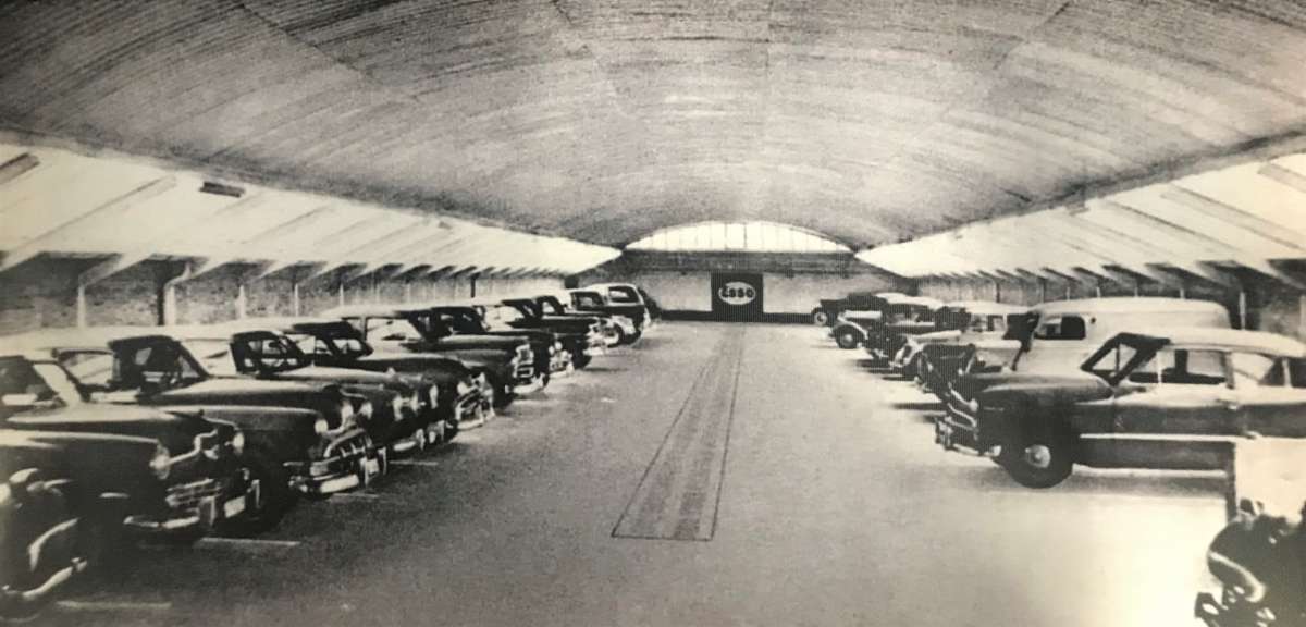 Garage conçu en 1949 par l’architecte tournaisien Gerard Renard pour la concession GENERAL MOTORS d’Ixelles, couvert par une structure métallique spectaculaire du modèle breveté et déposé SDG OMEGA. Cette charpente-couverture prenant appui sur des structures métalliques latérales permet une portée de plus de 15M libre de tout appui, réalisée avec une belle économie de moyen. Le projet prévoit le maintien et la vérification de la structure, la restitution des travées éclairantes en verre armé, le rétablissement du volume intérieur dans sa pureté d’origine, et le réaménagement complet de la partie à rue en bureaux, salles de réunion et de vente. Une attention particulière sera portée à l’isolation thermique du bâtiment par l’extérieur, qui permettra de retrouver la lecture des ondulations des tôles métalliques de l’intérieur du bâtiment.