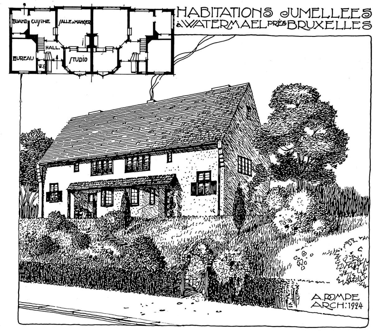 Projet d’extension et de restauration partielle d’une maison unifamiliale, construite en 1923 avec sa mitoyenne jumelle par l’architecte Antoine Pompe. Affichant un intéressant dépouillement architectonique, le bâtiment possède les caractéristiques de l’œuvre de Pompe dans la première moitié des années 1920, par sa volumétrie sous haut double versant, ses façades en briques apparentes, ses châssis à la hollandaise à subdivisions horizontales, et la composition jumelée symétrique.