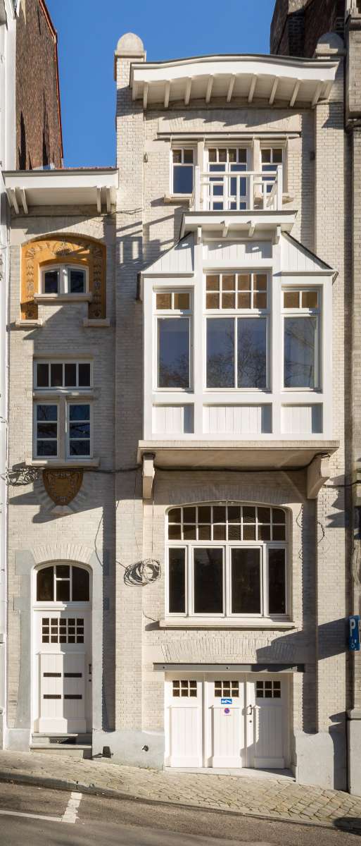 Restauration d’une maison d’habitation Art Nouveau, avec atelier d‘artiste construite en 1908 par l’architecte Paul Hamesse (1877-1956) pour le peintre Henri Louis Ludwig et transformée en immeuble de rapport après la mort de l’épouse de ce dernier en 1963. Le projet prévoit, tout en maintenant la division actuelle en 3 appartements, le rétablissement de deux éléments importants de l’architecture d’origine de Paul Hamesse : le studio d’artiste du dernier étage et le principe de cour couverte sur l’arrière des sous-sols. Au rez de chaussée, la suppression d’une partie des annexes, tout en maintenant la troisième pièce ajoutée dès 1909, permet de retrouver une large ouverture sur la cour rendue possible par le rejet de la cage d’escalier en façade. La réfection et l’isolation des toitures et des parties enterrées et le doublage intérieur des menuiseries anciennes restaurées amélioreront les performances énergétiques dans le respect du caractère patrimonial de l’immeuble. L’ensemble des menuiseries extérieure sera restauré, restitué dans le cas de la porte d’entrée et réinterprété pour la porte du garage créée en 1965. Les sgraffites attribués à Paul Cauchie seront également restaurés avec soin, tout comme les autres éléments décoratifs de la façade.