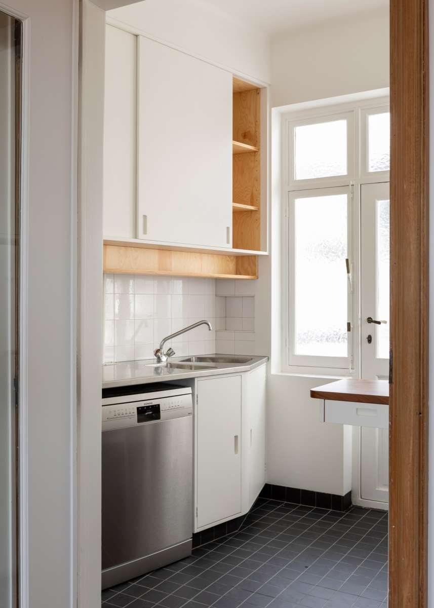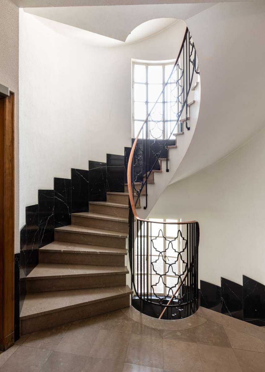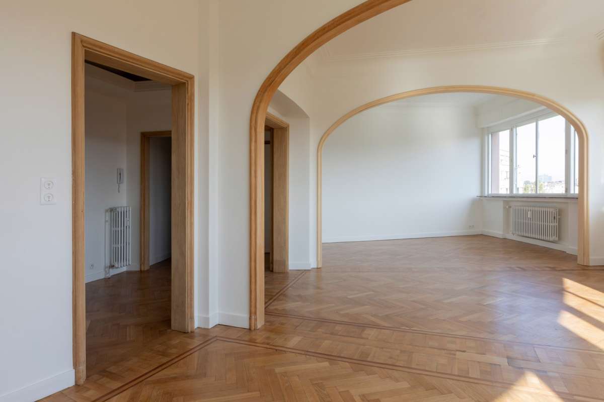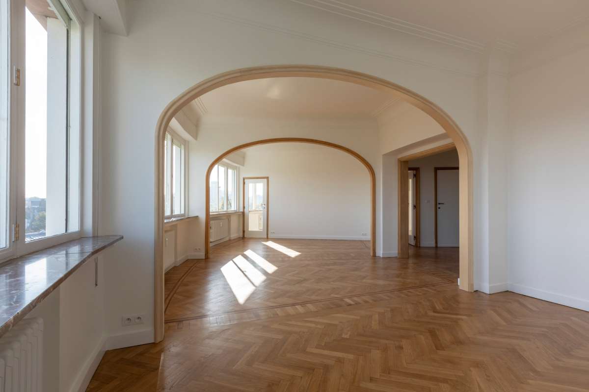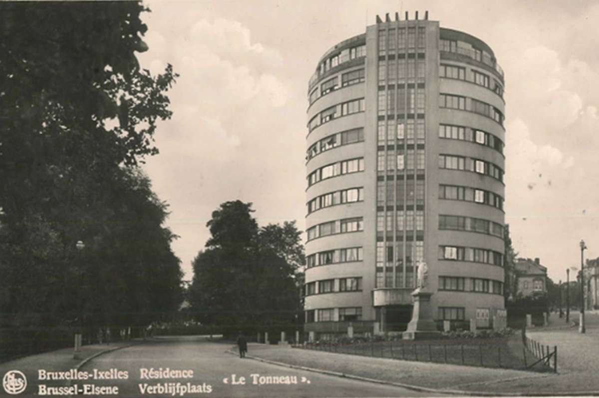 Témoin de l'engouement de la haute bourgeoisie, après la première guerre mondiale, pour l'immeuble à appartements, l’immeuble « Le Tonneau » conçu par les architectes Stanislas Jasinski et Jean-Florian Collin s'inscrit dans la logique du congrès des CIAM qui eut lieu en 1930 à Bruxelles, et dont la principale conclusion quant à la problématique du logement fut celle des immeubles à étages multiples. Il occupe donc une place importante dans l'histoire architecturale bruxelloise. La restauration des parties classées de l’appartement du 7ème étage s’attache aux châssis en acier, avec volets projetants à l’italienne ajourés en bois, à la restitution des menuiseries extérieures en bois disparues en façade arrière, et à la porte d’entrée de l’appartement en chêne Limba. Les aménagements contemporains des parties non classées respectent l’esprit du modernisme, cuisine dépouillée et fonctionnaliste et sanitaires spartiates. Les pièces de vie et chambre à coucher sont restaurées dans le respect des parquets, moulures et menuiseries, radiateurs en fonte d’époque.