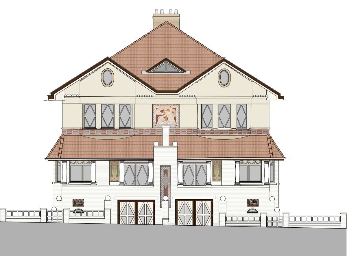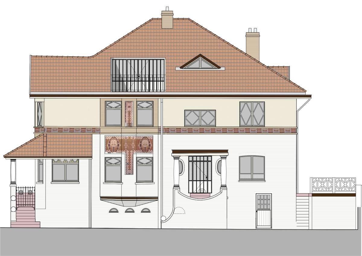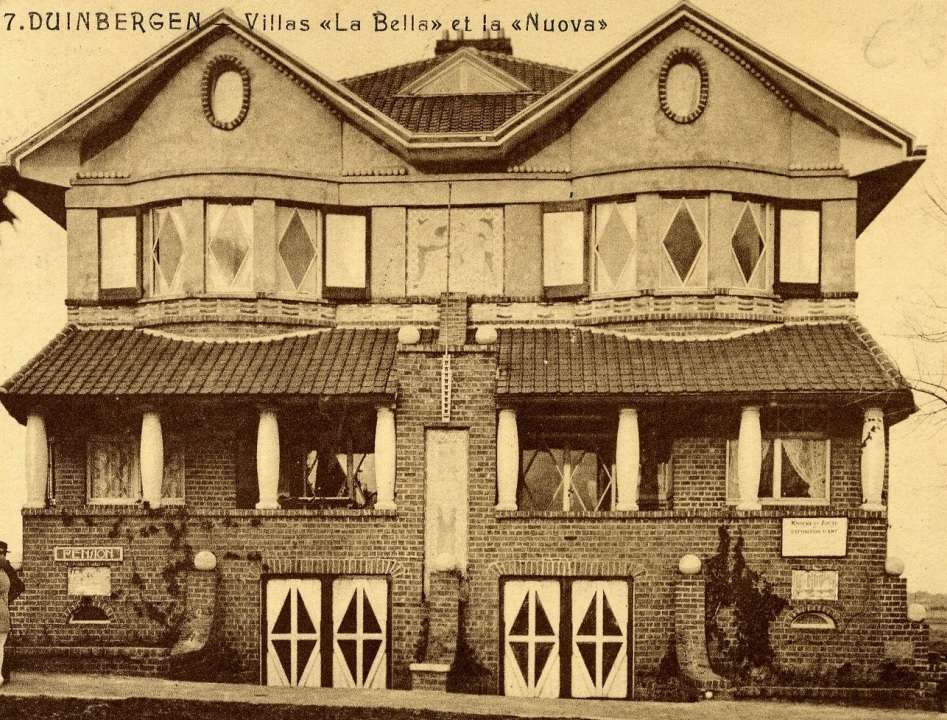 Projet de restauration des villas jumelles « La Bella » et « La Nuova » construites par l’architecte Paul Cauchie en collaboration avec son ami Edouard Frankinet à Duinbergen, nouvelle station balnéaire alors en cours de lotissement et construction. Les villas, parfaitement symétriques au moment de leur construction, sont ornementées de sgraffites extérieurs et intérieurs, également attribués à Paul Cauchie. Ce dernier occupe la villa « La Nuova » avec sa famille, tandis que la villa « La Bella » aurait été rapidement mise en location. En témoignent des photos d’époque, illustrant des moments en famille et entre amis des Cauchie et Frankinet à la côte. La villa « La Bella » a fait l’objet d’une première phase de restauration des façades (chaulage des briques et restitution des sgraffites encore partiellement en place à l’extérieur et à l’intérieur des villas par Marie-Hélène Ghisdal). La seconde phase verra la restitution des menuiseries extérieures, des décors des façades et le rétablissement des aménagements intérieurs fortement modifiés de la villa « La Nuova », en cohérence avec la symétrie d’origine unifiant autrefois les deux maisons.