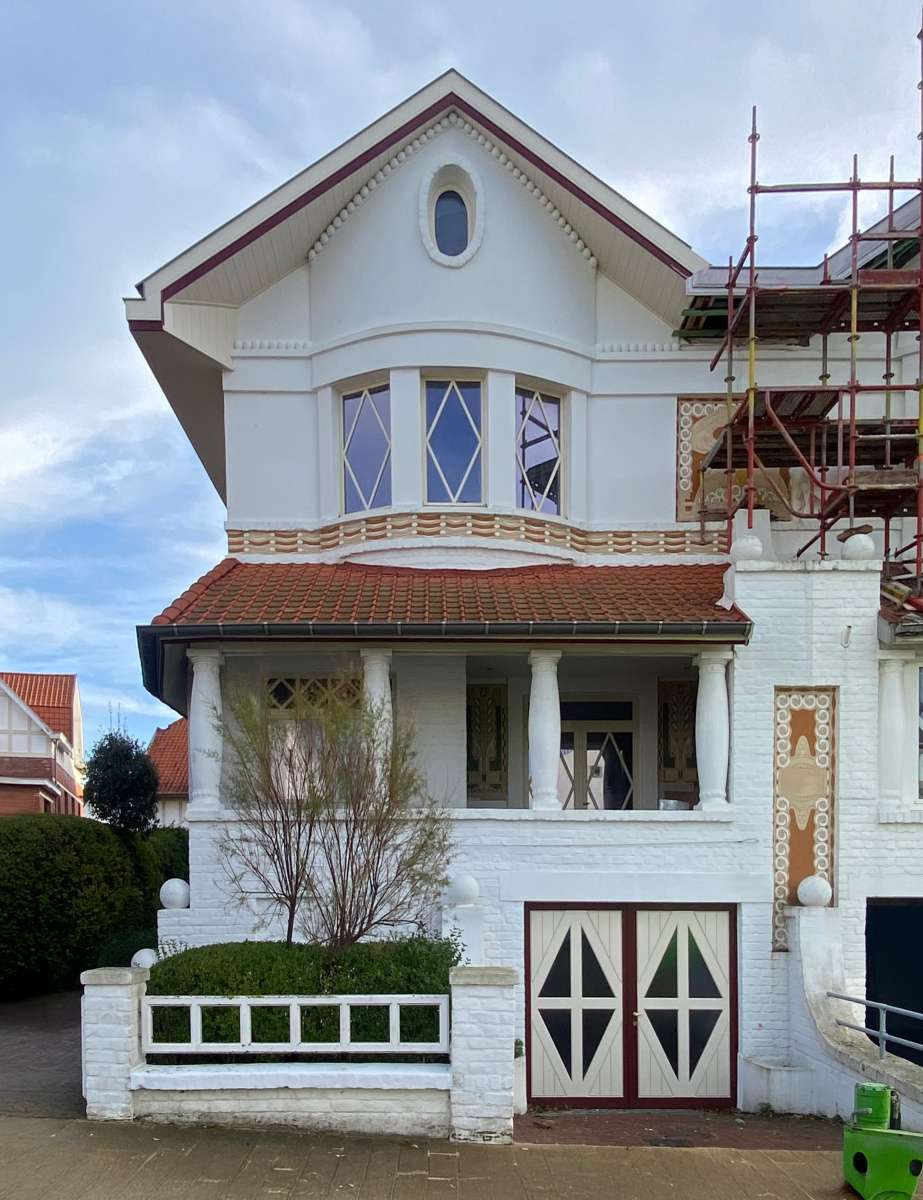 Projet de restauration des villas jumelles « La Bella » et « La Nuova » construites par l’architecte Paul Cauchie en collaboration avec son ami Edouard Frankinet à Duinbergen, nouvelle station balnéaire alors en cours de lotissement et construction. Les villas, parfaitement symétriques au moment de leur construction, sont ornementées de sgraffites extérieurs et intérieurs, également attribués à Paul Cauchie. Ce dernier occupe la villa « La Nuova » avec sa famille, tandis que la villa « La Bella » aurait été rapidement mise en location. En témoignent des photos d’époque, illustrant des moments en famille et entre amis des Cauchie et Frankinet à la côte. La villa « La Bella » a fait l’objet d’une première phase de restauration des façades (chaulage des briques et restitution des sgraffites encore partiellement en place à l’extérieur et à l’intérieur des villas par Marie-Hélène Ghisdal). La seconde phase a vu la restitution des menuiseries extérieures, des décors des façades et le rétablissement des aménagements intérieurs fortement modifiés de la villa « La Nuova », en cohérence avec la symétrie d’origine unifiant autrefois les deux maisons.