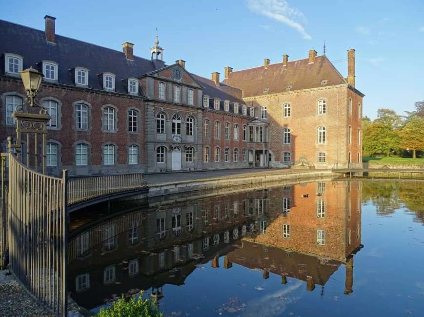 Remarquable château élevé au XVIIIe siècle sur les plans de l'architecte Jean-Baptiste Chermanne, le bâtiment présente un plan en U autour d'une cour d'honneur pavée, l'ensemble ceint de douves dans un domaine de haute qualité paysagère. Le projet comprend la réaffectation des anciennes écuries du domaine en habitation particulière et salle de réception, avec une attention portée sur le maintien et valorisation des éléments patrimoniaux.