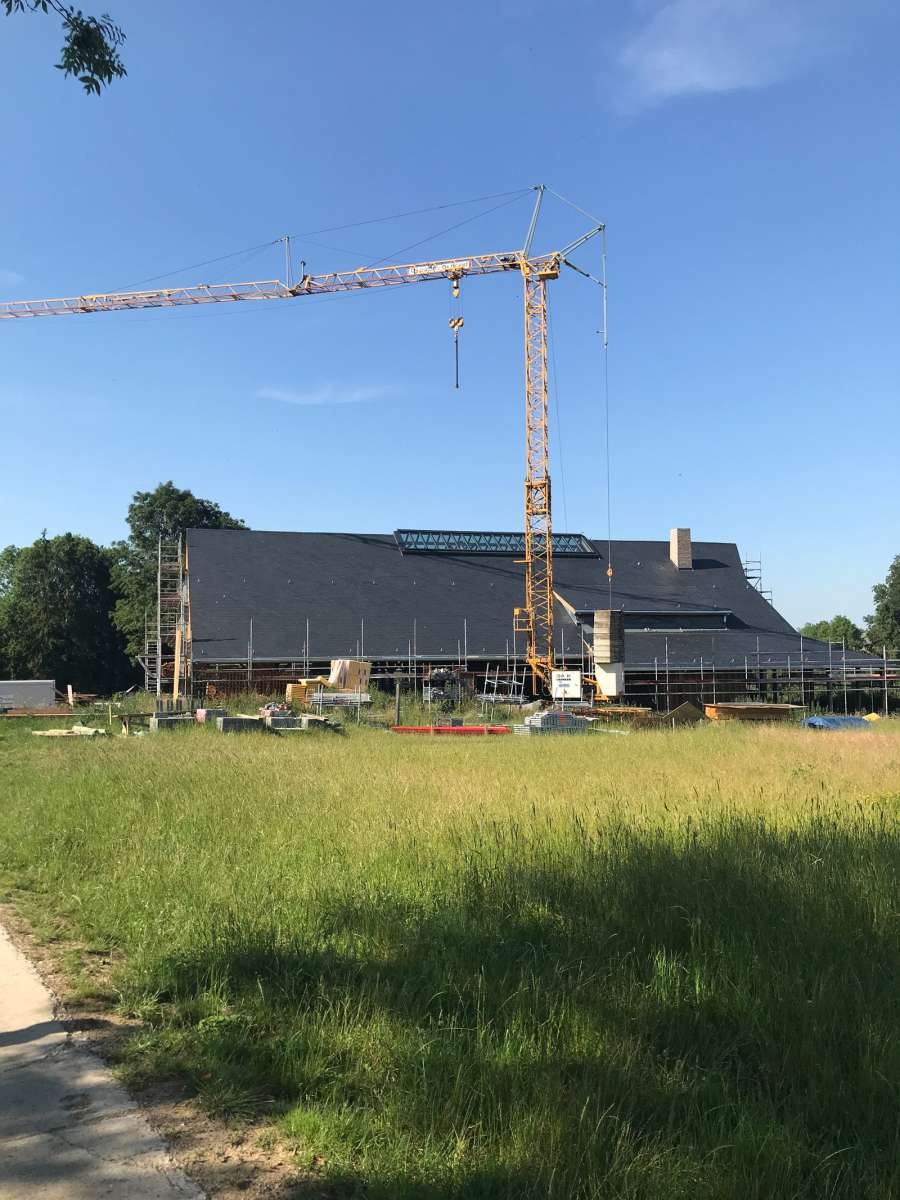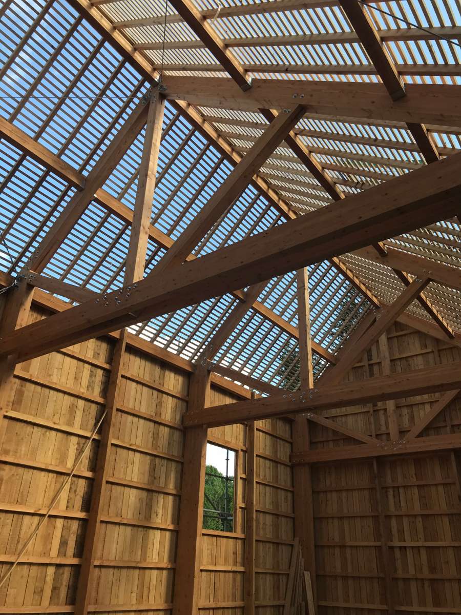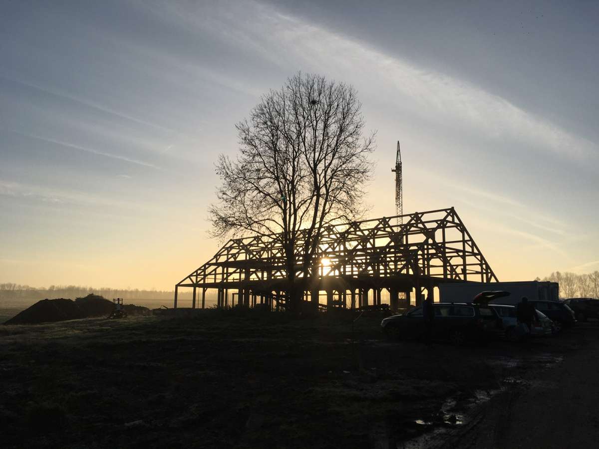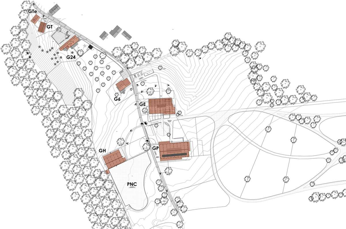 Implantées à l’endroit d’anciens hangars métalliques, les écuries présentent une charpente en chêne assemblée traditionnellement; la pente de toiture importante permet la création d’un fenil aux étages et d’autres fonctions complémentaires à l’élevage des chevaux. Le hangar agricole et la piste couverte sont à ossature acier apparente et structure secondaire en résineux indigène massif, avec de grandes verrières ouvrant des vues sur la campagne. Isolations optimales en matériaux naturels, réserves importantes d’eau de pluie et fonctions intégrées à la nature font de ce projet une tentative d’intégration d'une architecture agricole actuelle dans le paysage.