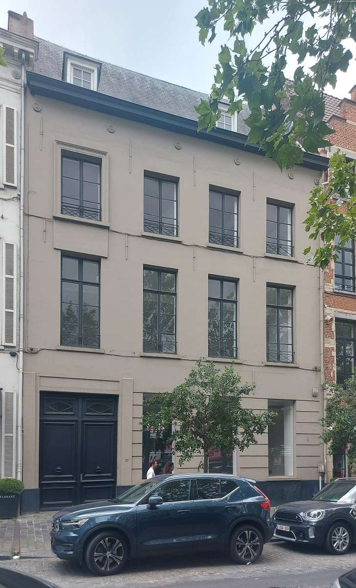 Ancien hôtel particulier, dont les parties les plus anciennes remontent au XVIe siècle, originellement conçu comme palais urbain de style Renaissance flamande, remanié aux XVIIIe et XIXe siècles dans le goût néoclassique et Empire. Le bâtiment devient une maison de commerce au début du XXe siècle, avec modifications mineures du rez-de-chaussée, avant de profondes transformations intérieures entre 1993 et 1996. Le bâtiment est partiellement classé en 2005.