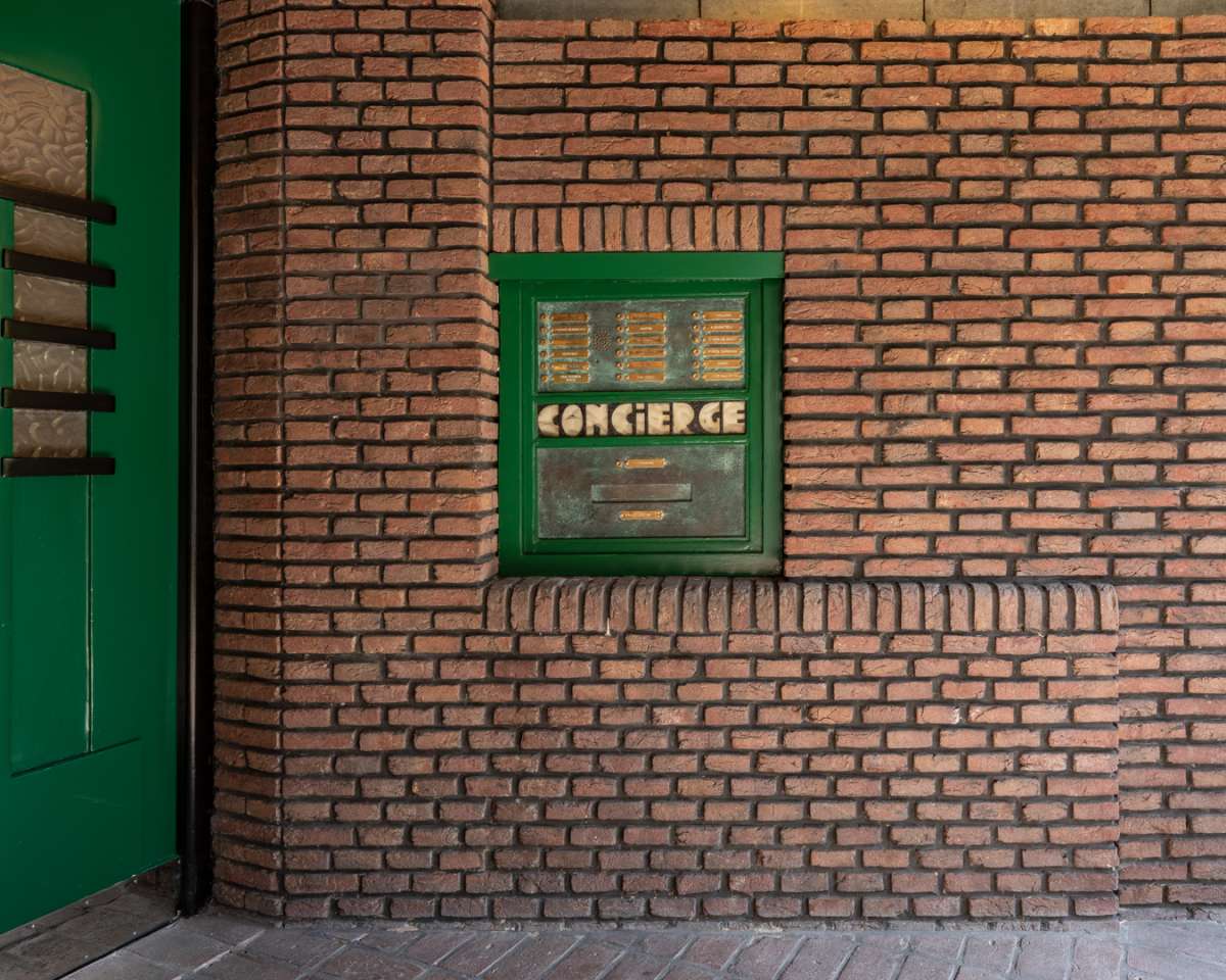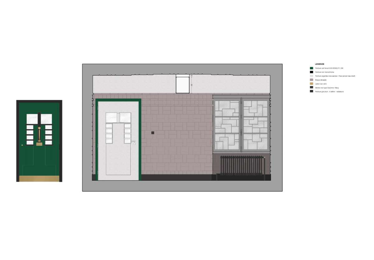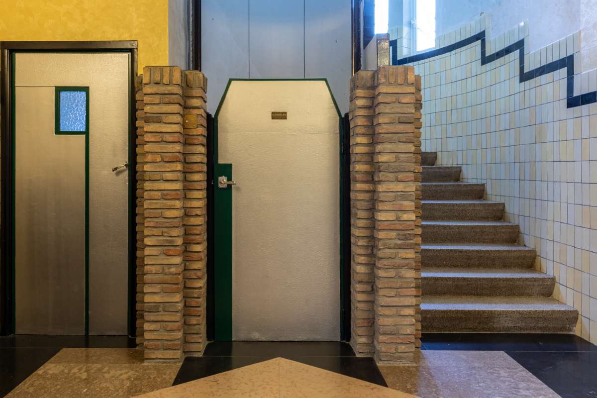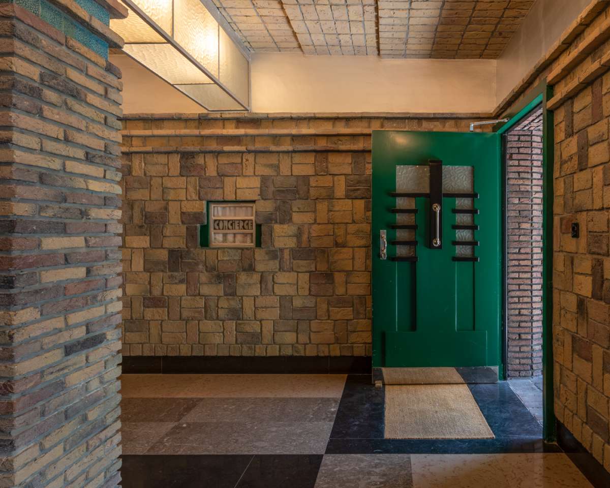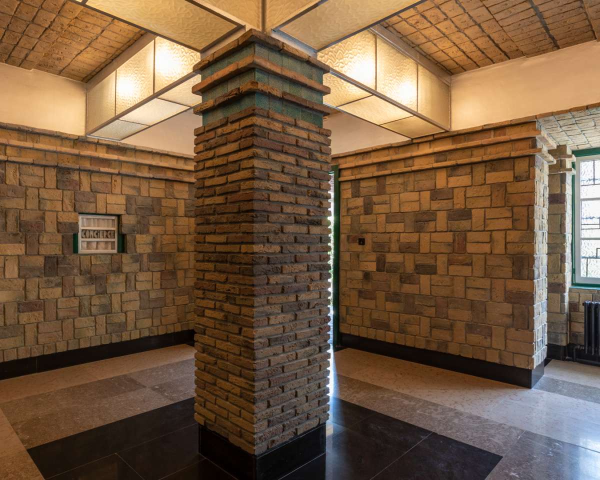 Immeuble à appartements construit en 1930 par l’architecte Joe Ramaekers dans un style Art Déco, très influencé par l’école d’Amsterdam. Le projet de restauration s’attache principalement au hall d’entrée, défiguré vers 1940. Après décapage de l’encuit recouvrant le parement et le plafond en maçonnerie décorative en briques, le décor expressionniste a été restauré et partiellement reconstitué d’après les photos d’époque.