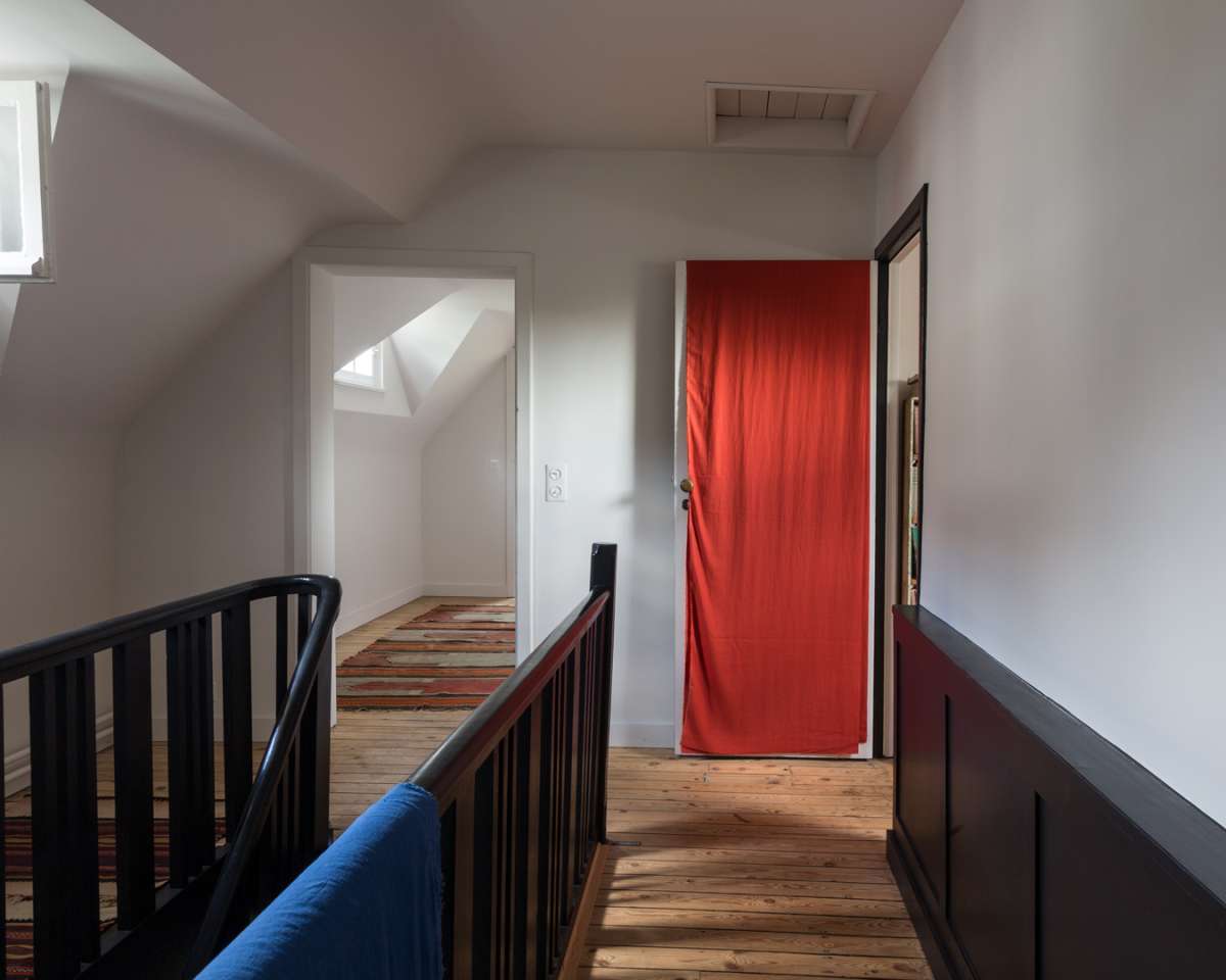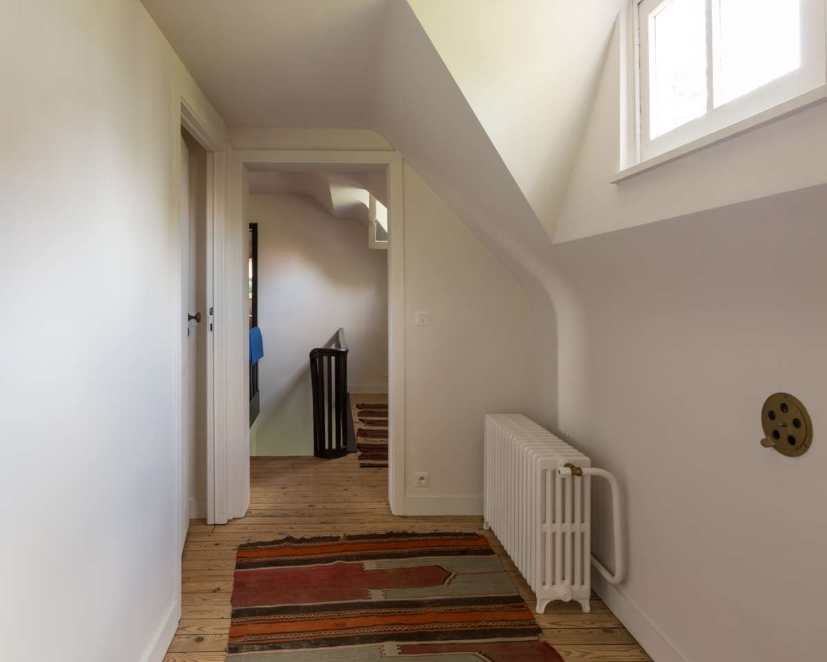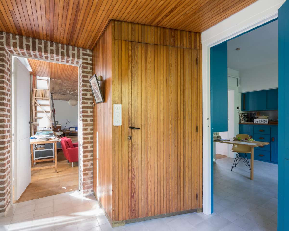 Située à proximité du premier chantier de construction de la cité-jardin "Le Logis", la maison personnelle de Jean-Jules Eggericx fut construite en 1922, date du début des travaux de la nouvelle cité; elle est considérée comme le prototype des maisons qui seront ensuite conçues par JJ Eggericx pour l'ensemble de la Cité. Inspirée des architectures des cités-jardins anglaises de l'époque, mais aussi du mouvement « Arts & Crafts » , cette maison répond aux critères qui présideront à la construction de l'un des plus beaux ensembles sociaux du 20e siècle : une surface de plancher calculée en fonction du nombre de personnes constituant une famille, une économie de moyens maximale et la mise en application de nouvelles techniques, dictées par les contraintes financières. Cette maison sera ensuite transformée entre 1959 et 1964 par John Eggericx, fils de l'architecte, qui la modernise, tourne l'accès vers l'Est, la rapprochant insensiblement du plan-type des maisons du logis. Le projet s'attache à la restauration des éléments d'origine de 1922 et au maintien des interventions de John.