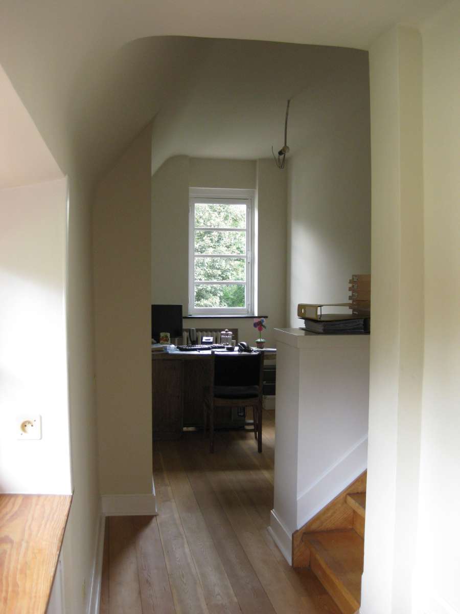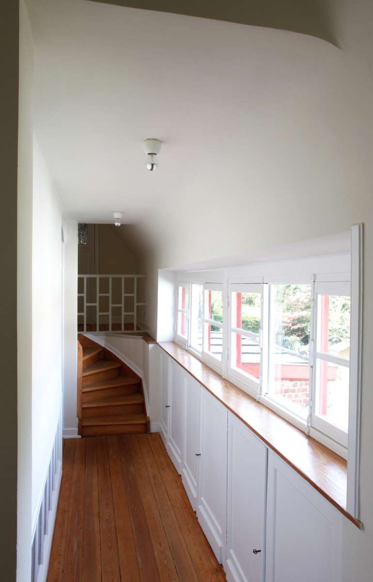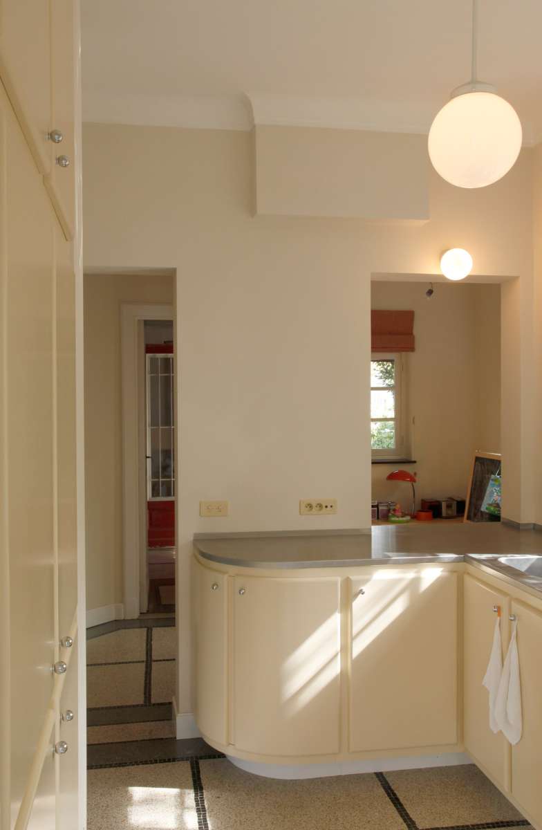 Habitation particulière construite par l’architecte Antoine Pompe en 1926 pour Mr René Stevens à Watermael-Boitsfort ; transformée en 1951 lors de l’agrandissement du séjour. Les caves ont été maintenues dans leur état d’origine et la laverie réaménagée. Au rez de chaussée, les anciennes pièces de service tournées vers le Sud et vers le jardin ont été reconverties en cuisine et séjour et s’ouvrent sur une nouvelle terrasse intégrant l’escalier extérieur d’origine. Le hall d’entrée et la cage d’escalier ont retrouvé leur éclairage premier et les granitos ont été restaurés. Au premier étage ont été créées deux nouvelles salles de bains et une nouvelle chambre d’enfant ouverte sur le jardin par une lucarne inspirée du modèle existant. Un nouvel escalier relie le premier étage aux combles réaffectés en chambres et cabinet de toilette, éclairés à l’Ouest par une grande lucarne et à l’est par des tabatières en fonte. Le portail est inspiré de dessins d’Antoine Pompe. Cette rénovation de l’une des maisons représentatives de l’oeuvre d’Antoine Pompe veille à répondre au programme d’occupation d’une famille d’aujourd’hui dans le respect des structures existantes. Les façades et toitures, classées après rénovation intérieure, ont fait l'objet d'une restauration complète.