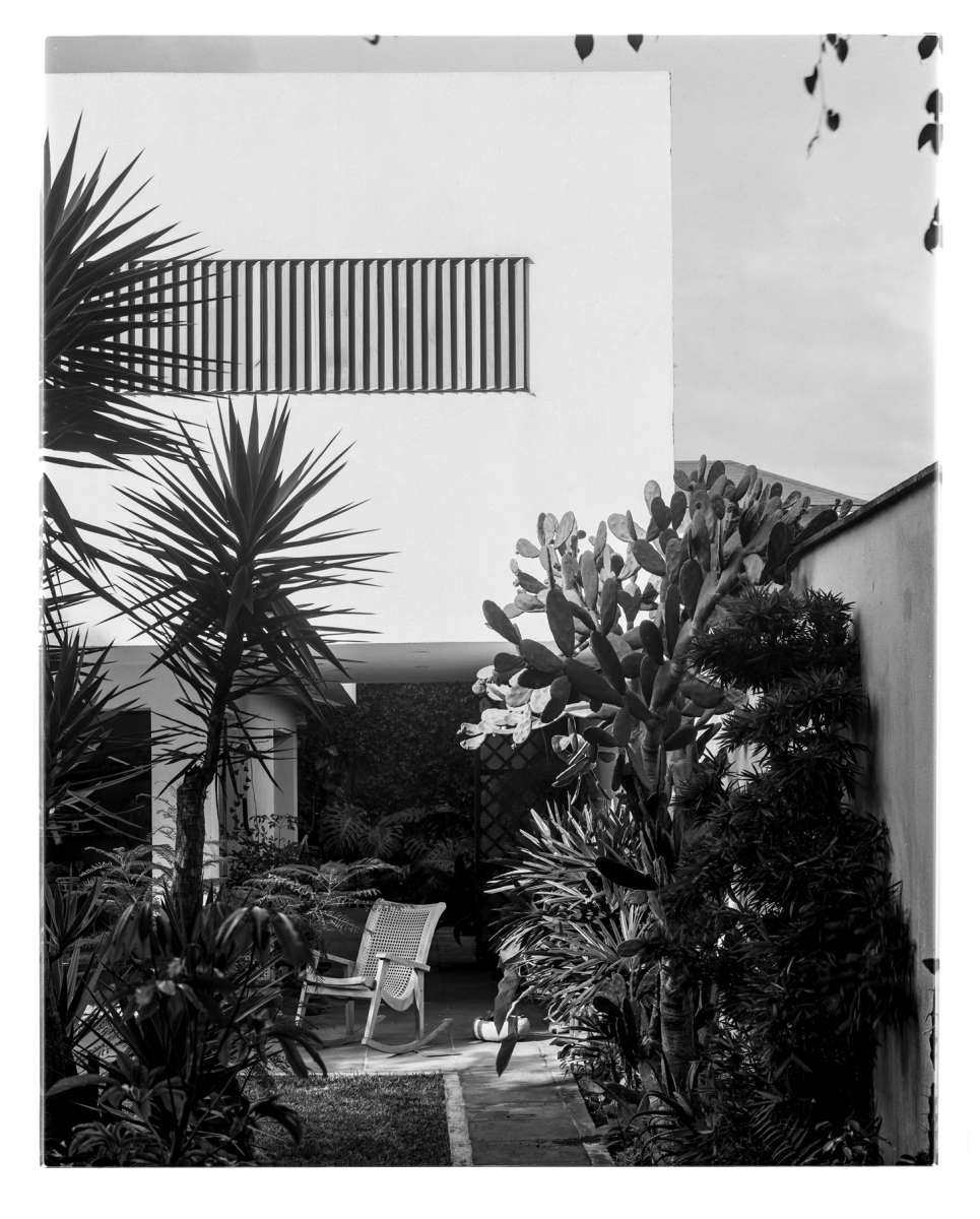 Nouvelle habitation construite dans la banlieue de Guatemala-Ciudad. Le plan s’organise autour du vide du séjour sur deux niveaux, ouvert sur le jardin intérieur par une grande baie vitrée. L’implantation dans un « condominium » - sorte de lotissement sécurisé – induit une introversion qui se traduit par le volume fermé du garage et de l’atelier côté rue. Les percements sont dictés par l’ensoleillement, dont l’apport est dosé par des claustras de bois orientables et le renfoncement des vitrages. Le jeu des matériaux se réduit à l’enduit blanc, au bois indigène et à de grands carreaux de terre cuite spécialement fabriqués pour le projet.