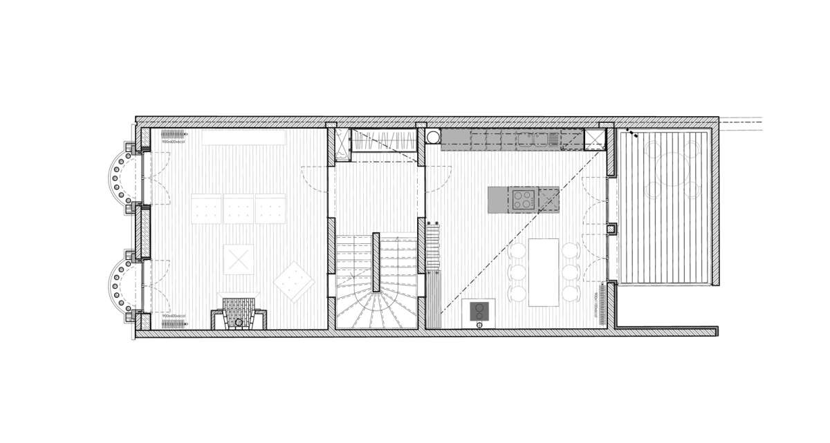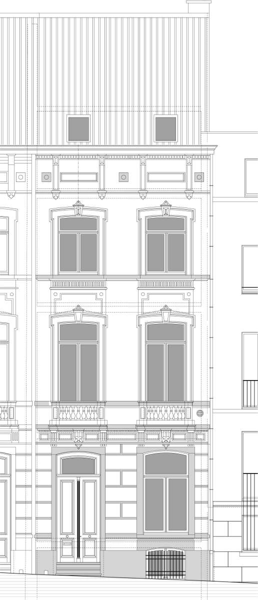 Compris dans une intervention de reconstruction partielle d’un ilôt du Quartier Léopold, cette maison de 1860 a été complètement restructurée. La nouvelle position centrale de la cage d’escalier permet de dégager les pièces avant et arrière sur toute la largeur assez réduite de la parcelle. Mieux proportionnés, les espaces intérieurs tirent parti des percements de la façade d’origine. Le vocabulaire et les matériaux des aménagements intérieurs intemporels s’accordent à cette relecture dépouillée de l’architecture néo-classique.